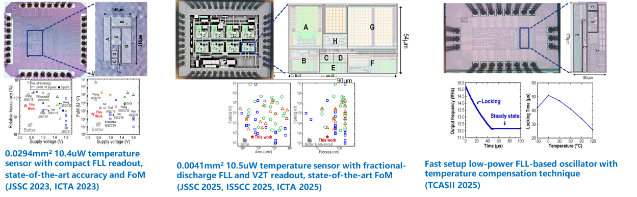 团队在ADC领域的研究专注于高性能时间域ADC的架构创新与性能优化,团队目前已经实现了高性能、各种PVT条件稳定工作、低功耗和高能效的时域量化ADC和电压-时域混合架构ADC。突破电压域ADC在先进工艺低压下的噪声的限制;并且实现电压到时间跨域量程自动对齐技术,确保在PVT变化下,电压域与时间域的量程自动对齐。此外,研究方向还覆盖集成化小型化设计,以满足无线通信、量子计算和高速数据处理对低延迟、高精度数据转换的需求。通过理论与工程实践相结合,团队为下一代高性能ADC发展提供了强有力的支持。