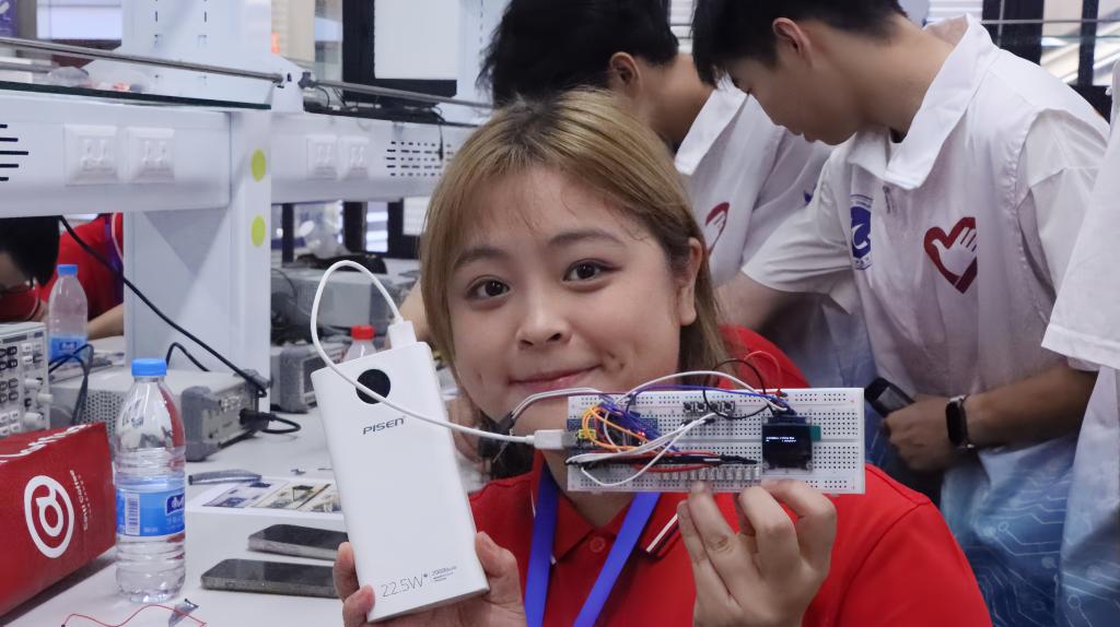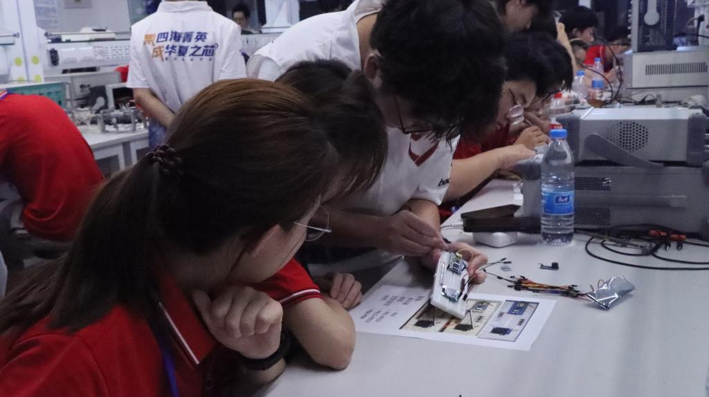 为增强实践体验,学院精心安排了实验环节。在志愿者引导下,营员们从识别电子元件开始,通过实际操作将一个个分立器件组装成可发声的简易电子琴,不仅加深了营员们对集成电路专业知识的理解,更让他们感受到了科技实践的魅力与成就感。