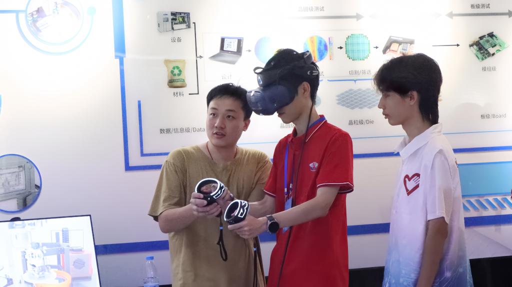 活动伊始,营员们在科普宣讲团讲解员的引导下参观了集成电路认知体验馆。学生讲解员向营员们系统介绍了集成电路的发展历程、核心技术及产业应用,通过丰富的展陈内容以及VR互动体验,帮助港澳学生建立对集成电路学科的系统认知。
