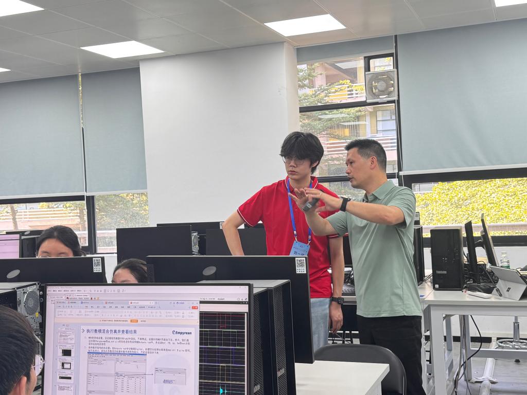 营员们还观摩了我院正在举行的集成电路设计训练营的教学。训练营负责人高怀恩老师和王君林老师为营员们讲解了训练营的培养模式和课程特色,营员们观摩了正在进行项目实训的学生们的实际操作过程,并就大湾区集成电路产业协同发展、产学研合作等方面展开了交流。