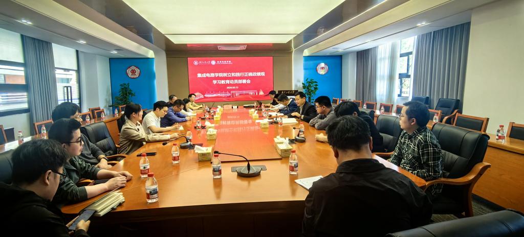 3月13日下午,集成电路学院召开树立和践行正确政绩观学习教育启动部署会。学院领导班子成员、党委委员以及党支部书记参加会议。会议由学院党委书记沈彬主持。