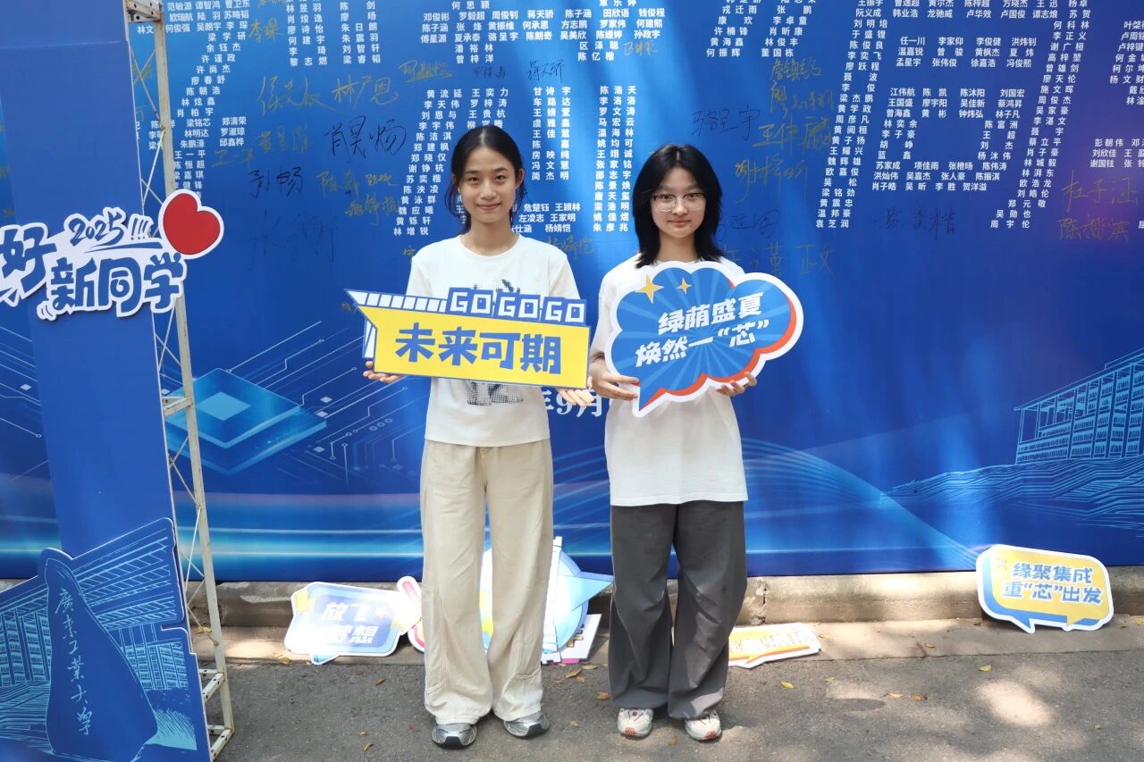 宿舍楼下,伴随着新生的欢声笑语,集成电路学院的【你好“芯”同学】板成为一道亮丽的风景线。学院特地在迎新志愿点设置了两个打卡点位,同学们纷纷与家长在此处留下进入大学的第一张合影,定格每一张青春洋溢的面孔、每一个美好灿烂的微笑,在这里见证与学院的初见,把首次步入大学校园的喜悦分享给身边最亲近的人。