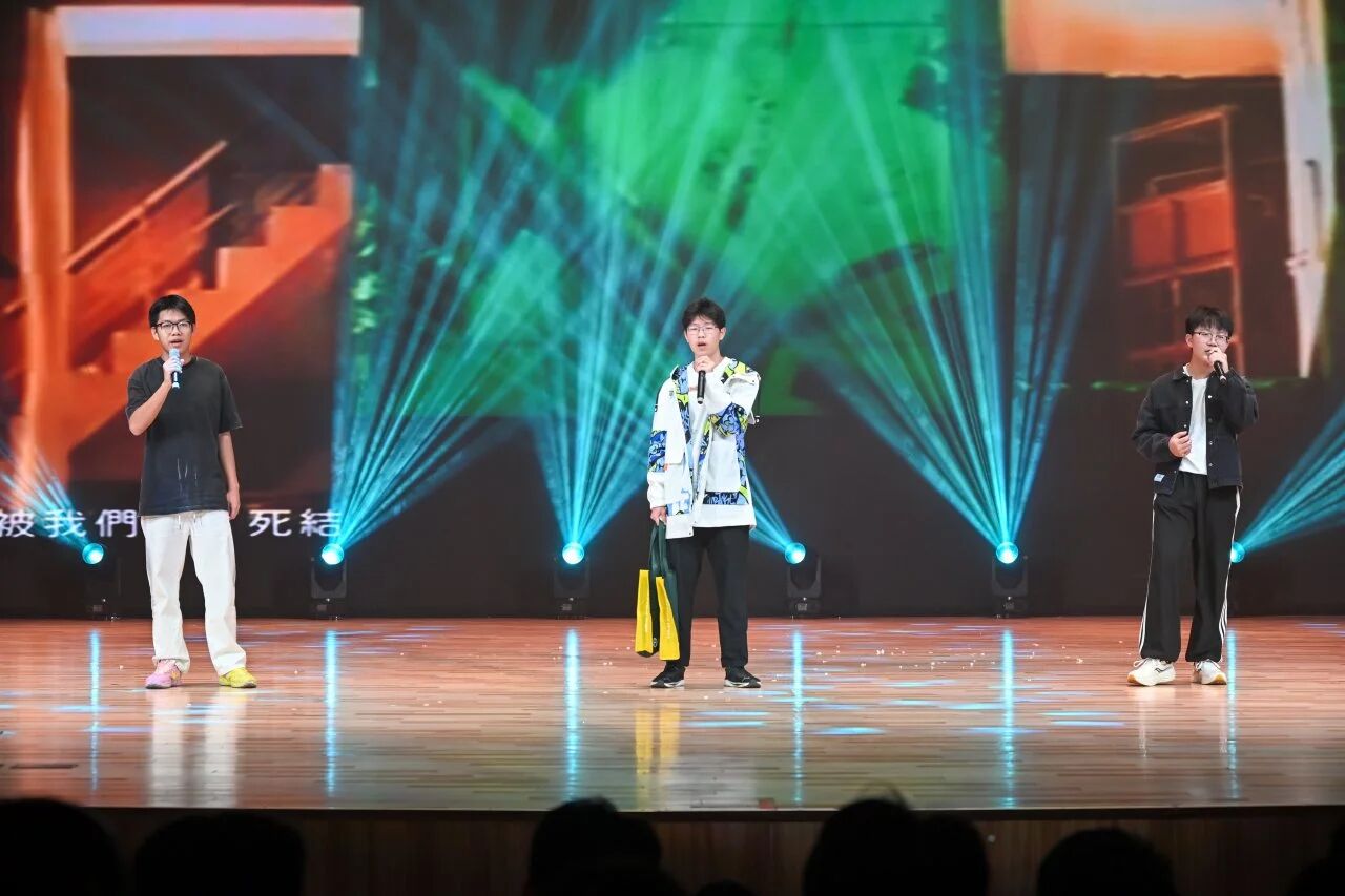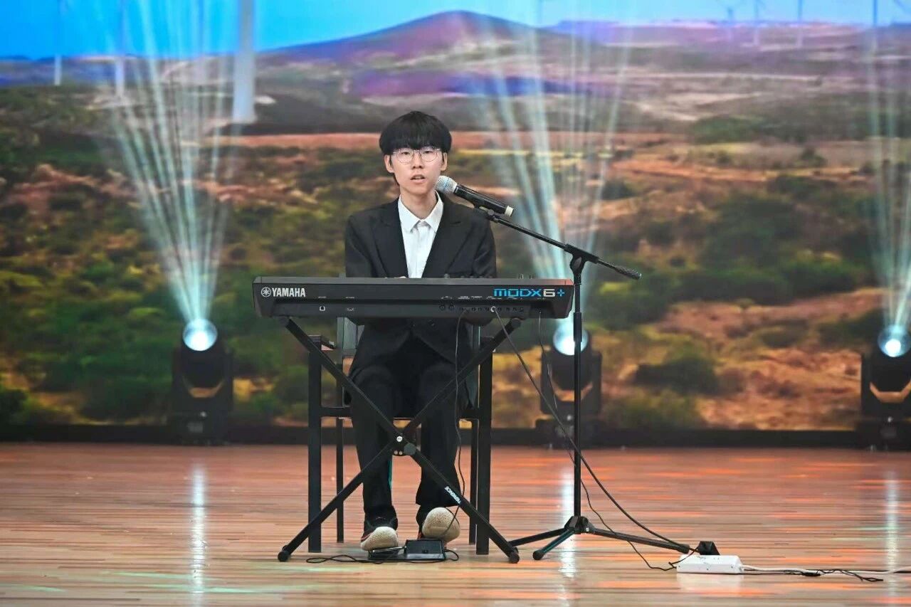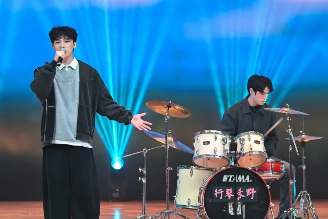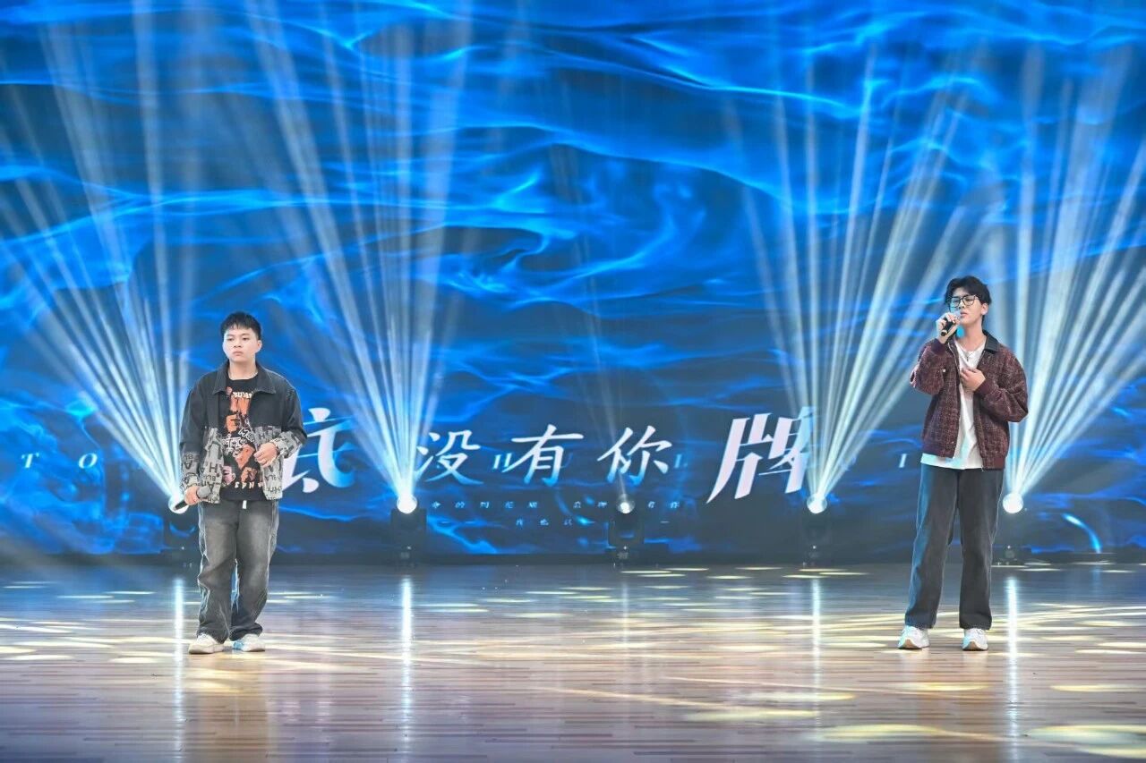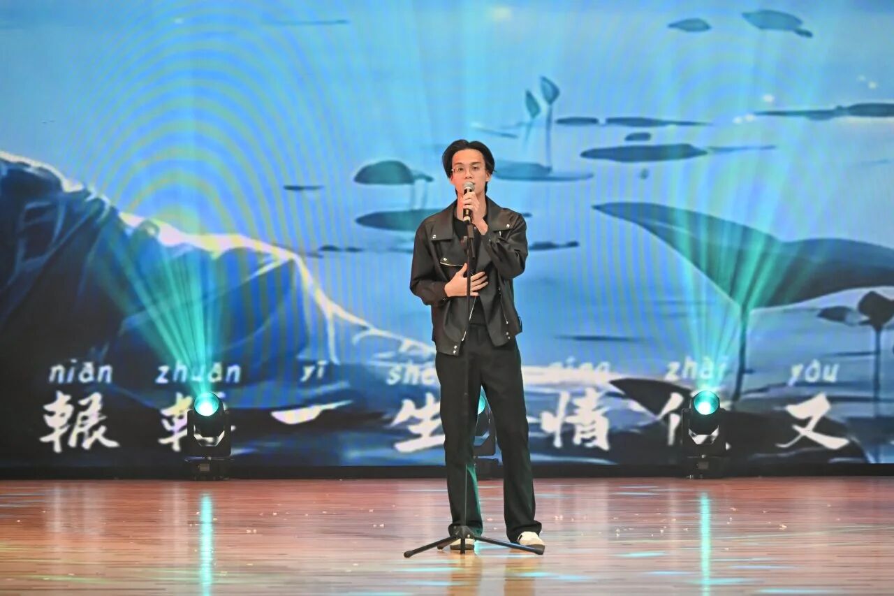 帷幕渐张,灯光渐亮,主持人以热情洋溢的开场白点燃全场氛围。《圣诞结》响起,登场的三位新生以动人嗓音,默契合唱,唱响冬日氛围感;《烟花易冷》的独唱,少年身着皮衣,古典词韵撞上利落麦架,国风旋律里藏着少年意气,古韵与朝气交融;