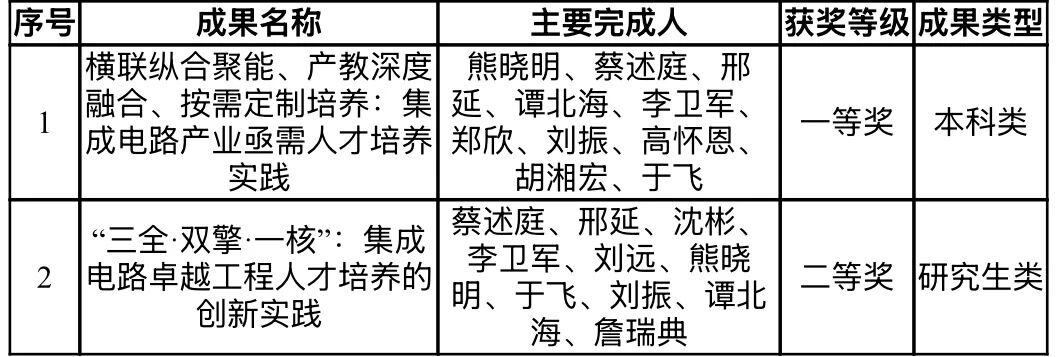 另一成果《“三全·双擎·一核”:集成电路卓越工程人才培养的创新实践》荣获2025年全省高等教育类优秀教学成果(研究生类)二等奖。该成果立足国家战略需求,构建“三全”本硕贯通培养体系,通过“双擎驱动”机制推动校企深度协同,并以解决产业真实问题为起点,培养具备多学科交叉与系统创新能力的高层次人才。