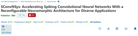我院刘怡俊教授团队在集成电路与超大规模系统领域国际顶级期刊《IEEE Transactions on Very Large Scale Integration Systems》(T-VLSI)上发表了题为《SConvNSys: Accelerating Spiking Convolutional Neural Networks With a Reconfigurable Neuromorphic Architecture for Diverse Applications》的研究论文。