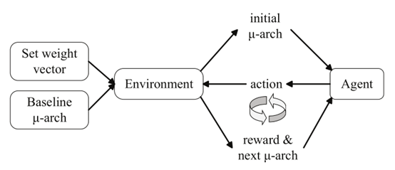 随着 RISC-V 指令集架构的迅速发展,设计空间探索(DSE)对于优化 CPU 微架构的性能、功耗和面积(PPA)十分重要。像传统的微架构 DSE 往往复杂且耗时。现有的机器学习方法虽能应对微架构DSE问题,但往往会依赖大量训练数据或受限于预定义的修改顺序,导致探索灵活性不足且面临高维动作空间和稀疏奖励的问题。针对这一挑战,团队提出了一种基于离散 Soft Actor-Critic(SAC)框架的强化学习方法,该方法能够动态选择和优化微架构参数,增强了设计空间探索的灵活性而无需依赖预定义的修改序列,同时通过引入了熵最大化策略进行高效探索,并集成了多步时序差分学习、经验回放缓冲区以及回报归一化技术,有效解决了高维动作空间下的样本效率低和学习不稳定的问题。研究结果表明,与现有最先进的方法相比 SAC-DSE 方法在样本效率上表现更佳,取得了优越的性能,展示了其在微架构 DSE 中的有效性和效率。此外,该方法通过对 PPA 指标的归一化技术,使所获得的设计点符合用户偏好的基础上,其 PPA 指标全面优于基准设计,为复杂的微架构DSE提供了高效方案。