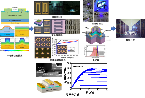 团队依托于广东工业大学集成电路学院,紧密结合半导体产业需求,致力于宽禁带半导体分立芯片与功能性集成芯片的设计、制备与应用研究,包括:功率器件、激光器、深紫外LED、Micro-LED、紫外探测器的TCAD仿真技术开发与应用和半导体材料与器件的数据库开发,旨在提高器件设计-器件制造-可靠性评估-数据库开发的全线服务能力,助力半导体器件制造领域的发展。在医工领域,建立MEMS生物传感器的仿真模拟系统,提升并优化可复用的MEMS生物传感器的生物兼容性、灵敏度、选择性、可靠性、稳定性和即时数据处理与分析能力,制造出可用于医疗、环境保护和食品安全的MEMS生物传感器。